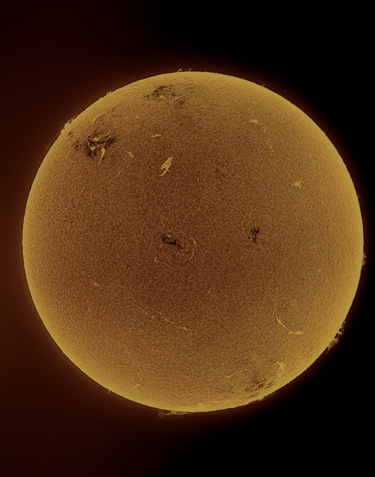 毛茸茸的是太阳的色球层,由爱瞰达40日珥镜(还没有取名字)执行任务,黑子由“郁金香”(115apo)拍摄